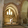 C’est dans le jardin du cloître que fulmine une sobriété toute cistercienne. Deux allées en croix ourlent quatre plates-bandes de gazon verdoyant, aux coins desquels trônent les thuyas, symboles d’éternité - nous confie M. Aynard. Dépouillement et austérité, rien ne serait susceptible de troubler la superbe des lieux.