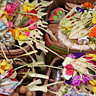 Les hibiscus et les bougainvilliers partent à l’assaut, avec toutes leurs couleurs, des maisons, des temples, s’enroulent dans les arbres pour inventer une espèce encore inconnue ! Hemmérocales, cannas, ipomées, hibiscus, strelizia, arum, anturium, orchidées, œillets d’inde orange vif, sont les fleurs de tous les jours cueillies pour les bouquets magnifiques et gigantesques, piquées aussi dans les paniers d’offrandes, dans les cheveux des balinaises, en jetée de pétales sur votre lit d’hôtel, en jonchée dans les allées… Un raffinement simple et coloré.