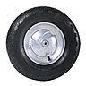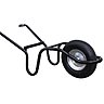 La roue de la brouette : gonflée, large et stable, limite les traces sur la pelouse. Sur terrain épineux ou accidenté, préférer une brouette avec roue increvable.