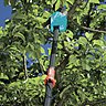 Pour ce type d’élagage, Gardena a créé d’intelligents échenilloirs ou coupe-branches avec manche télescopique. Le produit présenté dispose d’une bonne longueur (presque 5 mètres) et d’une transmission démultipliée qui rend la coupe maniable sans trop de fatigue. La coupe est sèche et bonne pour des petites branches d’environ 4 à 5 centimètres de diamètre seulement.