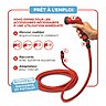 Raccordé au robinet, il s'allonge et atteint environ le double de sa longueur initiale. Après son utilisation, il retrouve sa longueur originale. Pratique à enrouler, même sans enrouleur, le tuyau d’arrosage extensible rouge occupe peu de place.