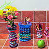 Les sacs en plastique de couleur sont une plaie pour l’environnement, Aurore Piketty a trouvé une solution pour les utiliser en les découpant en lanières pour créer un beau lien en plastique prêt à être crocheté et transformé en pots à crayons ou coupe à fruits.
