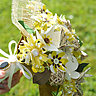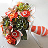 Les bouquets ronds sont composés de fleurs les plus diverses, réalisés à la main avec minutie dans des matériaux différents qu’elle assemble avec goût dans les tons demandés par la future mariée. Pétales de soie ou de papier sont retravaillés en nuances de couleur, boutons de nacre ou décoratifs, pistils artificiels et feuilles en tissu sont mis en tiges et rassemblés dans un manchon molletonné pour être agréable à la main, recouvert de tissu ou de dentelle.