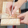 À l’aide de la perceuse-visseuse sans fil PSR 10,8 LI-2 munie d’une scie-trépan, percez ensuite les cinq trous dans le panneau en bois.