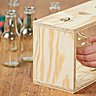 Mesurez les bouteilles :hauteur, largeur et diamètre du goulot. Confectionnez le cadre en bois, puis découpez le panneau de contreplaqué de façon à ce que les bouteilles soient espacées régulièrement.