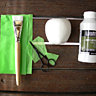 Pas de pépin pour ces pommes, car elles sont en polystyrène, et pour ressembler aux vraies Granny-Smith, on découpe des carrés de papier de soie vert que l’on colle avec du gel médium acrylique mat passé au pinceau, une fois le médium sec on pique une brindille à l’intérieur pour simuler la tige et on en place 6 pour remplir le panier en cagette.