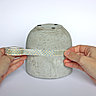 2- Retournez le pot sur le plan de travail et peignez le fond du pot avec une peinture acrylique peu diluée, laissez sécher et repassez une couche si nécessaire.