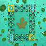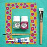 peindre en 1er les motifs roses, puis les verts, bien laisser sécher entre chaque couche pour terminer en recouvrant les 4 côtés de l’encadrement de peinture jaune.