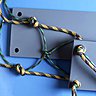 Coupez les extrémités de la longueur désirée. Répéter sur le côté opposé. Brulez le bout des cordes avec le briquet pour empêcher de s’effilocher.