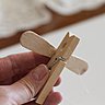 3- Posez une autre goutte de colle sur la face inférieure de la pince à linge (en-dessous) parallèle à la première et coller un mini bâton d’esquimau.