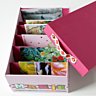 Dans un esprit de récupération,donner une deuxième vie à ces boîtes à chaussures. Un coup de peinture, une poignée en papier, 1 pliage accordéon et des lettres à découper, prêtes pour classer et conserver photos et cartes postales.