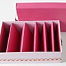 Réalisez un pliage accordéon dans une grande feuille de papier mi-teinte, de la largeur et hauteur de la boîte. Allonger la longueur du pliage en raccordant bord à bord 1 autre feuille pliée. Réaliser un pliage long ou court selon le sens utilisé pour agencer la boîte. Coller le 1er et dernier volet du pliage sur chaque côté de la boîte pour réaliser un intercalaire.