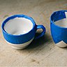 1- Dégraissez la porcelaine avec de l’alcool dénaturé, posez l’adhésif pour délimiter la zone à recouvrir, à l’intérieur et à l’extérieur de la tasse, sans oublier l’anse. Attention seul l’extérieur de la tasse peut être peint, la peinture ne devant pas être au contact des aliments.