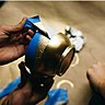 2- Recouvrez le dessus de la tasse d’un papier alu pour éviter les projections de peinture à l’intérieur. Protégez le plan de travail, agitez la bombe quelques instants, maintenez la tasse par le haut ou l’anse, et vaporisez la peinture à 25 cm de distance pour éviter les coulures. Préférez plusieurs couches légères en respectant un temps de pose de 5 minutes entre chaque couche.