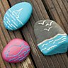 Choisir les galets en fonction de leur forme, leur couleur ou leur défaut qui pourront s’avérer être source d’inspiration : un trait blanc traversant le galet deviendra un horizon bordé d’une vague. Les galets plats seront choisis pour être recouverts d’un aplat de couleur et offriront une surface plane pour dessiner un motif, un galet en forme de coquille se fera Jacques et les rayures de certains seront rehaussées par des points en peinture 3D.