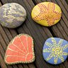 Poser les galets sur un plan de travail recouvert de plastique, peindre le galet avec un pinceau et de la peinture sans ajouter d’eau, 2 couches sur chaque face en laissant un temps de séchage de 20 mn entre chaque couche et 12 heures après la dernière couche.