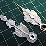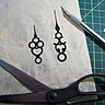 4- Coupez les formes et les collez sur la minute et les aiguilles des heures fourni avec le kit de mouvement d'horlogerie. Utilisez un poinçon ou le cutter x-acto pour découper le trou dans le cercle en bas de la forme afin de l’adapter sur les mains en métal pour pouvoir tenir sur le mouvement d’horlogerie.