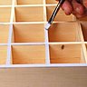Le matériel qu’il vous faut est simple, il se compose d’un meuble à tiroirs multi cases en bois blanc (Artémio), et d’1 tube 110ml de Crème de couleur dans chaque coloris, rouge passion, rêve crétois, moisson, mine, vert sous bois, orange capucine, blanc nuage et 1 pinceau plat.