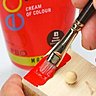 La peinture utilisée au nom évocateur de Crème de couleur et idéale pour peindre en une seule application, conditionnée en tubes de 110 ml elle convient aussi bien pour peindre sur châssis, peindre les décors muraux ou des objets décoratifs.