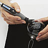 Etape 1 : Préparez le plan de travail en étalant un papier absorbant pour poser la boule en verre. Avec la machine Dremel ®3000 et le flexible 225, insérez la pointe diamant 7105. Gravez une série de motifs de flocons de neige autour de la boule en laissant des espaces entre chaque motifs. Gravez délicatement sans appuyer... et utilisez les lunettes de protection.