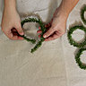 1. Découpez des branches de sapin de même longueur, créez un cercle avec chaque branche, liez les 2 extrémités avec un fil de laiton.