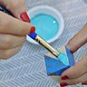 3. Peignez une autre face du cube sans toucher au premier triangle peint dans le cas où la peinture ne serait pas encore complètement sèche puis peignez comme dans la première étape. Répétez l'opération pour tous les cubes en ayant fait le choix des couleurs sur les côtés et les triangles.