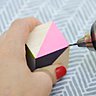 4. Utilisez le poinçon ou un clou pour créer l’endroit du forage dans chacun des cubes comme vous percez un trou. N'hésitez pas à expérimenter divers placements et choisissez ce qui fonctionne le mieux à l’oeil.