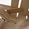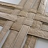 Une fois les bandes cousues, tisser les bandes ensemble afin qu'elles créent un croisillon. Si vous vous trompez de côté (c'est à dire lorsque la lisère du papier est visible ou un autre défaut), positionnez les bandes afin qu'elles pointent vers le haut et soient cachées à l'intérieur du panier lors de la finition.