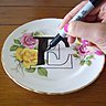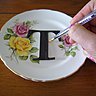 Nettoyez soigneusement l’assiette avec de l’alcool dénaturé, posez la lettre au centre de l’assiette et tracez son contour avec un crayon gras ou un stylo (faites des essais préalables).