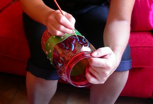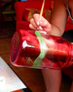 Indispensable à l'achèvement du travail et à l'entretien du pot, le passage de vernis en deux couches assure la bonne tenue des couleurs dans le temps et en permet le nettoyage du bocal au chiffon humide.