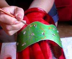 Sur la partie basse du bocal, dessinez des arabesques d'inspiration mauresque au cerne "or".