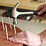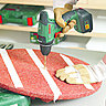 5 - Coupez les tiges de 8 cm de long avec la scie sauteuse, poncez les bords puis enfoncez-les doucement avec un marteau dans les trous.