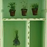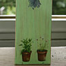 Enlever les 2 couches de cellulose d’une serviette en papier à motifs d’herbes aromatiques. Découper les motifs, poser le vernis colle sur le bois puis coller le motif en repassant le vernis par-dessus. Finaliser en tapotant légèrement avec une petite brosse pochoir.