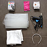 Pour le réaliser vous faudra :1 pack de Coloria Gris -1 pack de Coloria Fuchsia 1 mètre de voile en tulle - 50 cm de pongé de soie blanche -1 serre-tête blanc -1 pistolet à colle à textile - 3 petits pots en verre - ciseaux