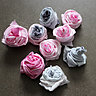 - Réalisez les roses : enroulez les bandes de soie sur elles-mêmes, puis fixez-les à l’aide du pistolet à colle sur le haut et tout le long du serre-tête.