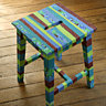 Un tabouret tout en rayures de tissus