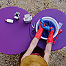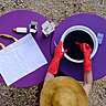 5 - Immergez complètement le textile mouillé dans la bassine de colorant. Puis remuez le textile en l’immergeant et laissez reposer 20 à 30 mn, tout en continuant de remuer le textile de temps en temps.