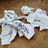 Les essais sont jetés à terre, négligemment froissés sur le parquet dans une très belle mise en scène qu’elle a su saisir.