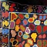 Les taches de couleurs chaudes cernées d'un trait contrasté font penser aux mosaïques de carreaux cassés chères à Gaudi, les motifs s'entremêlent et parsèment la surface d'un coussin à réaliser en toute sérénité.