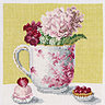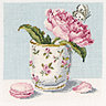 Les 3 tableaux à broder, Pivoine au macaron, Pivoine et la religieuse et Pivoine Tea time mesurent 15x15 cm. Ils se brodent au point de croix au point compté avec du fil Mouliné DMC sur une toile de lin 12 fils, livrés en kits avec les fournitures et la grille.