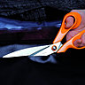Les ciseaux orange Fiskars ® sont fabriqués exclusivement en Finlande, leur design actuel a été crée par Olavi Linden et les lames forgées, trempées, puis facettées et affutées à 60 ° sont en acier inoxydable permettant une parfaite précision de coupe.