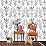 Dans le livre du papier-peint à colorier, la chronologie est respectée à travers les époques les plus importantes, et l'on apprend une foule de détails passionnants comme les papiers Tontisses en 1730 fabriqués à l’aide d’enduit collant sur le papier, permettant l’application de poudre de laine, dérivé de l'industrie du bois, formant des reliefs pour imiter les damassés, le velours. Les inspirations de Jean Pillement, artiste français et peintre de la reine Marie Antoinette, designer très influent et adepte du style chinois, ces dessins sont copiés et adaptés pour créer des papiers-peints.