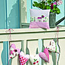 Une guirlande de coeurs en tissu à suspendre sur le bord d'une balustrade ou devant une cheminée, des accessoires pour la table, une nappe, un chemin de table mais aussi des sacs, des coussins et de multiples idées charmantes pour offrir et recevoir dans un style ludique et raffiné.