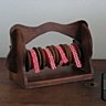Le présentoir à rubans est un objet insolite et joli, réalisé à partir de bobines anciennes en bois de hêtre montés astucieusement sur tourillons, le présentoir de 3 rangées de 4 bobines peut recevoir rubans et galons ou enrouler les fils à broder.