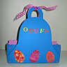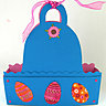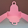Tracez au crayon 2 bandes de 2 cm de large sur 20 cm de long sur la carte bicolore. Découpez le bord d'un côté avec les ciseaux à lames festonnées de manière à ce que les festons soient sous le trait de crayon. Recoupez les bandes à la longueur exacte pour les introduire entre les 2 côtés repliés et la cloche. Posez des adhésifs double face au bas des 2 bandes sur le côté bleu et 2 au centre sur le côté rose pour assembler parfaitement le panier.
