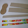 - Pour l'anse : découpez 1 bande de 32cm x 2 cm dans du carton simple cannelure et découpez 2 bandes dans du carton gris fin récupéré (ici, une boîte de céréales a été utilisée) de 32 cm x 2 cm et de 29.5 cm x 2 cm.