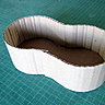 - Pour les côtés du panier : découpez 2 rectangles de 25 cm x 6 cm dans du carton simple cannelure, avec les cannelures parallèles au petit côté afin de pouvoir courber le carton.