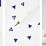 Découpez de petits triangles dans le papier bleu nuit pour confectionner les numéros ou utilisez des gommettes triangulaires. Ecrivez les numéros au stylo blanc et collez-les sur les cônes en papier.