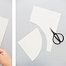 Coupez en biais l'angle de la forme découpée pour permettre une belle finition au cône une fois enroulé. Encollez tout le long de la lisière puis repliez délicatement le cône sur lui-même, assemblez en maintenant l’ensemble quelques minutes. Recoupez la base avec les ciseaux pour égaliser, votre cône en papier est prêt!