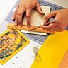 3- Réalisez simplement les encadrements en collant les images indiennes sur des cartes de couleur en laissant 1 cm de marge tout autour, préparez des fonds en carton bois de même dimension.